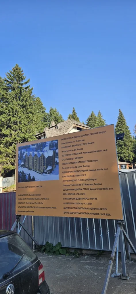 Na osnovu fotografije sa gradilišta, investitor je firma Kopaonik Construction, a izvođač radova je Interfast doo. Zanimljivo je da je Kopaonik Construction bio u vlasništvu MK Mountain resort doo Miodraga Kostića do aprila 2024. godine, kada je firmu preuzela BBSE Investments, a zatim je u suvlasništvo ušao i Interfast doo.