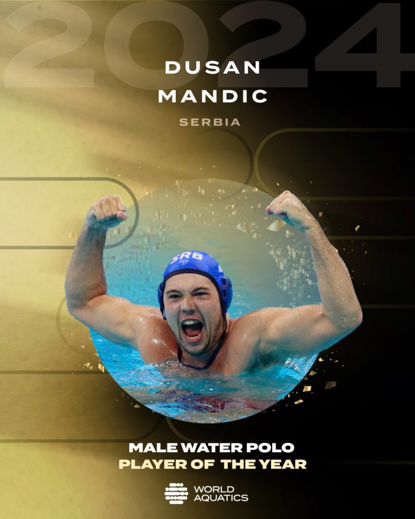 Nije bilo teško izabrati najboljeg jer Dušan Mandić je sa selekcijom Srbije osvojio zlato na Olimpijskim igrama u Parizu, bio je najbolji strelac turnira i MVP turnira. U klupskim okvirima sa mađarskim Ferencvarošem takođe je osvojio sve što se moglo: bio je prvak Mađarske, osvojio je LEN Ligu šampiona, bio je MVP sezone i najbolji strelac.