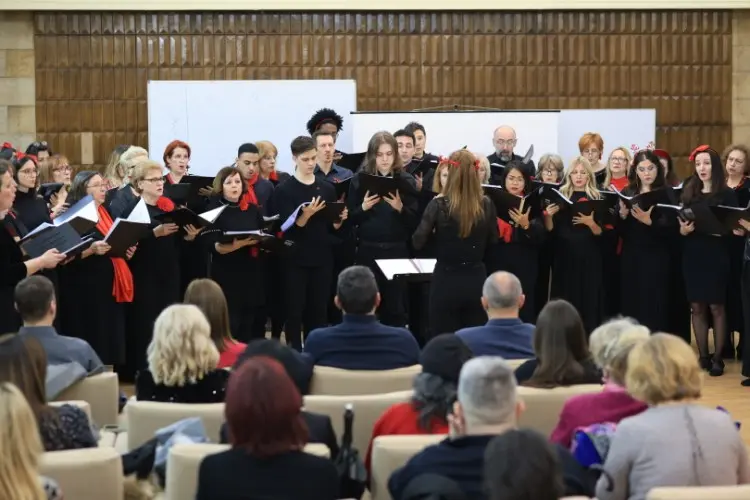 U svečanoj sali Druge kragujevačke gimnazije sinoć je održan praznični humanitarni koncert hora „International Belgrade Singers“. Pod dirigentskom palicom Olge Biserčić, dirigentkinje Simfonijskog orkestra i hora RTS-a, ansambl je izveo bogat repertoar internacionalnih božićnih i novogodišnjih pesama.