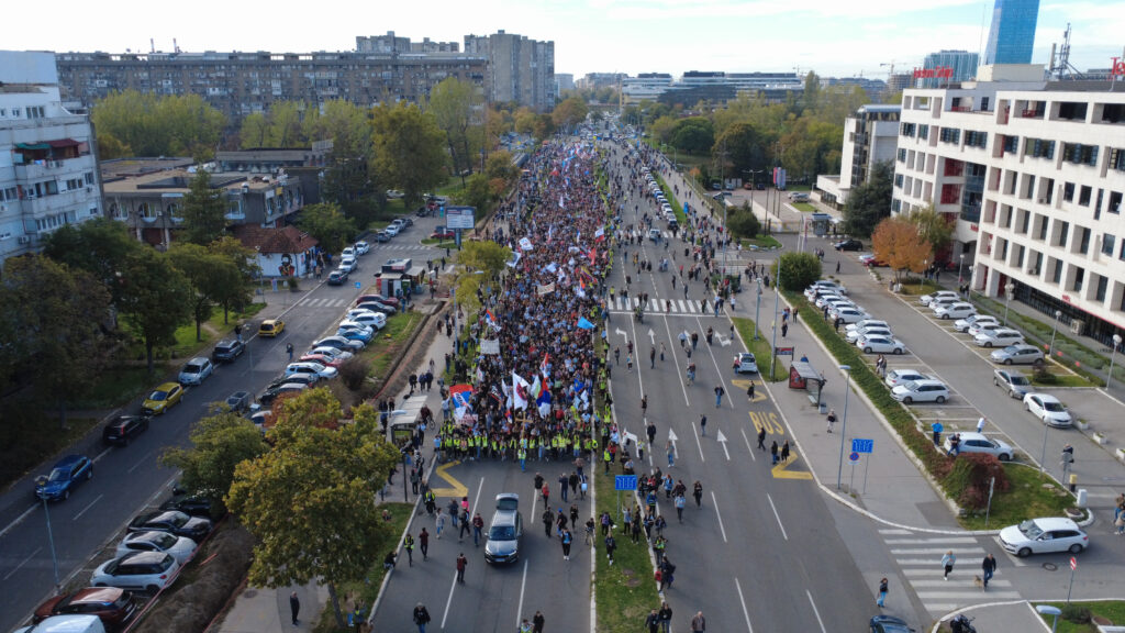 Kolona od nekoliko hiljada studenata, srednjoškolaca i građana pošla je jutros iz Beograda na pešačenje dugo oko 70 kilometara ka Novom Sadu, gde će u subotu, 1. novembra prisustvovati komemorativnom skupu povodom godinu dana od pada nadstrešnice na Železničkoj stanici, kada je poginulo 16 osoba.