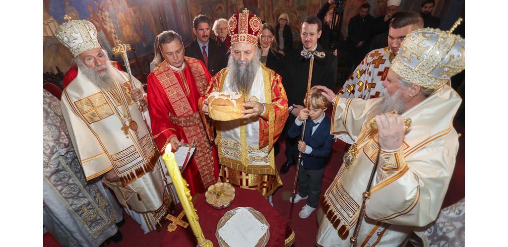 U tradicionalnoj besedi nakon Liturgije, Njegova Svetost Patrijarh srpski G. Porfirije je poručio da svi treba da se trudimo da svoj život uskladimo sa Gospodom i da činimo šta je do nas, da se molimo za mir među nama, mir u našoj zemlji i svuda, za razumevanje, jer nam je to preko potrebno. „Neka današnja slava bude istinska. Žao nam je što vaš otac, Prestolonaslednik Aleksandar, nije danas ovde, ali siguran sam da je molitveno dušom i čitavim svojim bićem ovde sa nama, i da se raduje da se slava u ovom hramu, u ovom domu, održava. I da, kada je jedanput obnovljena, daće Bog da traje, u Njegovoj ljubavi i Njegovom promislu, dokle god postoji i srpskog naroda“.