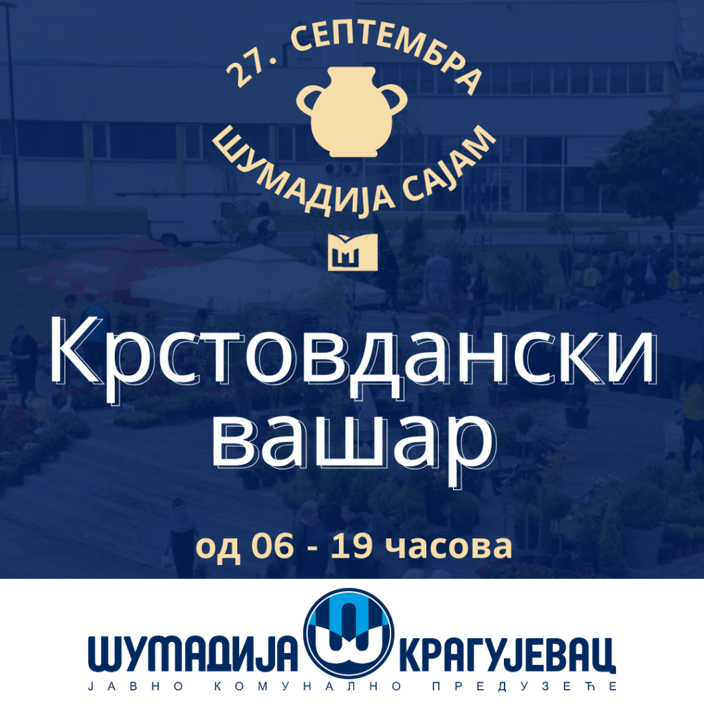 Tradicionalni Krstovdanski vašar biće održan 27. septembra 2023. godine na platou Šumadija sajma u Kragujevcu od 06 do 19 časova.