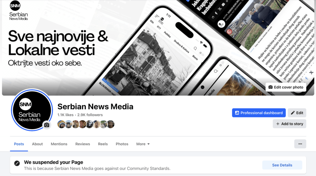 Informativni portal Serbian News Media od danas više nema aktivnu Facebook stranicu. Trenutno radimo na rešavanju problema koji je nastao usled velikog broja prijava na naše objavljene tekstove.