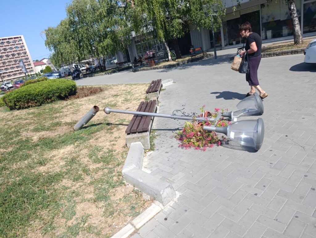 Na Trgu preko puta Gradske uprave u Kragujevcu, danas je došlo do incidenta kada je palo postolje ulične rasvete. Srećom, u nezgodi niko nije povređen.