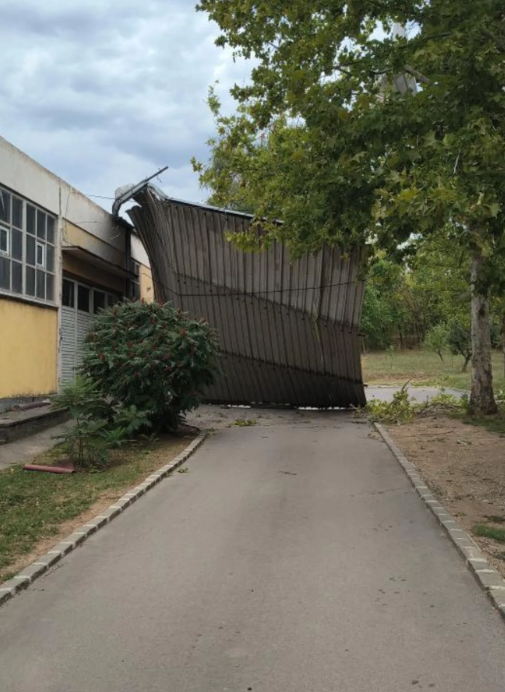Snažno nevreme koje je u subotu pogodilo Kragujevac izazvalo je veliku štetu, a posebno je ugrožena Trgovinsko-ugostiteljska škola „Toza Dragović“. Olujni vetar je podigao krov sa zgrade, koji je sada pao na stazu kojom svakodnevno prolaze učenici i profesori.