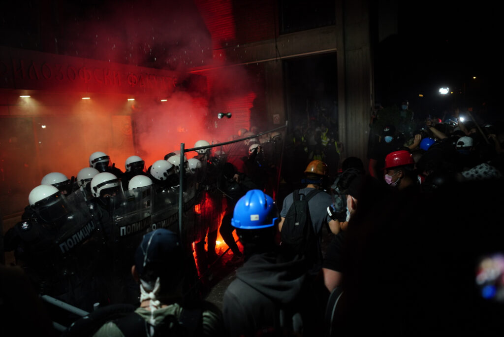 „Sa platoa SNP-a su sišli batinaši SNS-a i krenuli fizički da nas napadaju. Kada sam video da napadaju jednu moju koleginicu, vratio sam se da pokušam da je odvojim. I u tom momentu mi je jedan od batinaša zadao udarac u desno uvo i pukla mi je bubna opna. U svemu tome policajci nisu ništa radili, samo su stajali i gledali kako nas batinaši napadaju“, kazao je student.