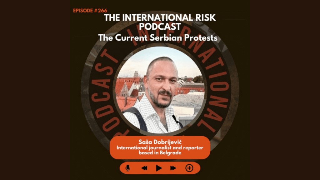 U vremenu kada se politički dijalog sve češće vodi iza zatvorenih vrata, a građanski glasovi ostaju bez odgovora, ulica postaje jedini prostor istinske diplomatije. U razgovoru sa Dominikom Bovinom, domaćinom The International Risk Podcast, urednik digitalnog magazina rEUconnecting – REUC i međunarodni novinar iz Srbije Saša Dobrijević otvorio je slojevitu sliku društvenih promena koje se odvijaju u Srbiji — ne kroz zvanične kanale, već kroz energiju ulica, glasove mladih i tišinu međunarodnih institucija.