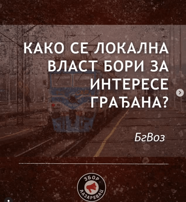 Kako navode u objavi, tadašnje rukovodstvo GO Lazarevac je u decembru 2019. godine najavilo početak rada linije BG voza ka Lazarevcu kao „istorijski korak“, uz obećanja o besplatnom prevozu uz BusPlus karticu, polascima na svakih 15 minuta, izgradnji drugog koloseka i putovanju do centra Beograda za 63 minuta. Javnosti je tada predstavljeno da je reč o trajnom i strateškom rešenju u interesu građana Lazarevca.